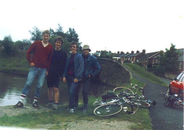 We all cycle home after a night's drinking. We lose Pete and whilst waiting for him, I fall off my bike. Pete then sails past laughing !